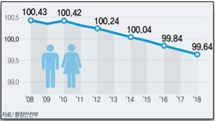 과거에는 여아에 비해 남아의 수가 많았으나 2010년도부터 확연히 줄어드는 추세가 시작되었다.