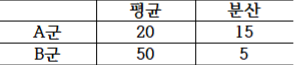 A군의 편차의 제곱은 225이며, B군의 편차의 제곱은 5다.