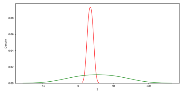 분산은 데이터가 얼마나 넓게 분포해 있는지 나타낸다. 편차 제곱의 평균을 나타내며 편차란 평균과의 아이이다. 편차를 모두 합하면 0이 된다. 합할 때 -가 있으면 안되기 때문에 제곱해서 더해준다. 데이터가 평균에 가까울수록 편차는 작아지며 분산도 작아진다.