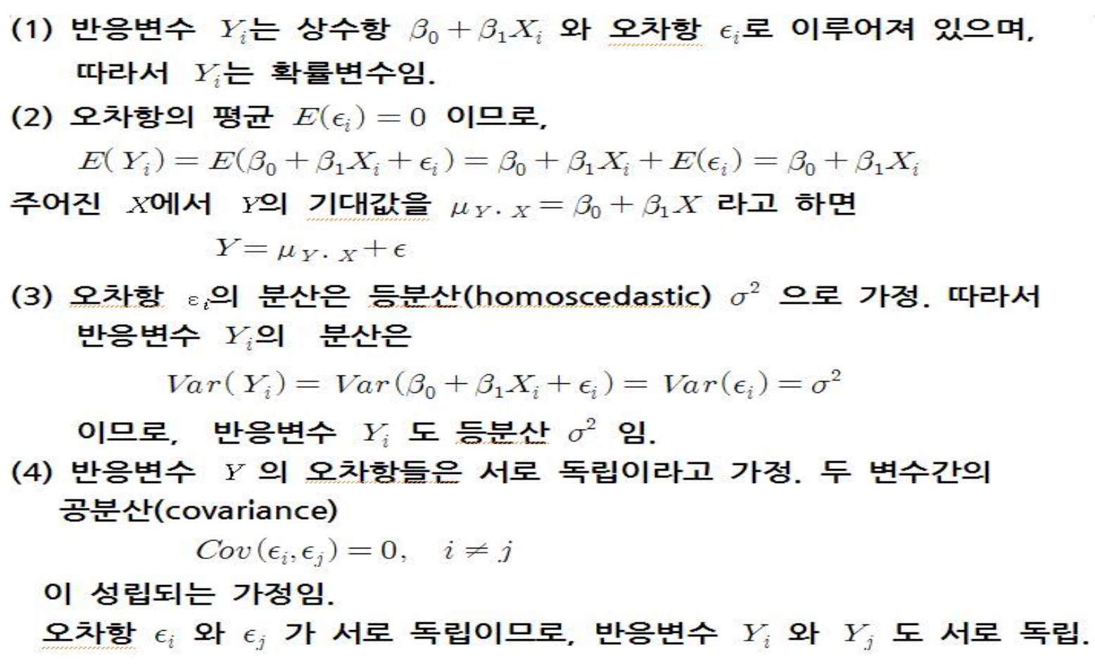 - $\epsilon_i$ : i번째 측정된 Y의 오차항으로 평균 $E(\epsilon_i) = 0$,