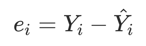 잔차는 $X_i$에서 측정된 값 $Y_i$와 추정된 $\hat Y_i$ 과의 차이다,