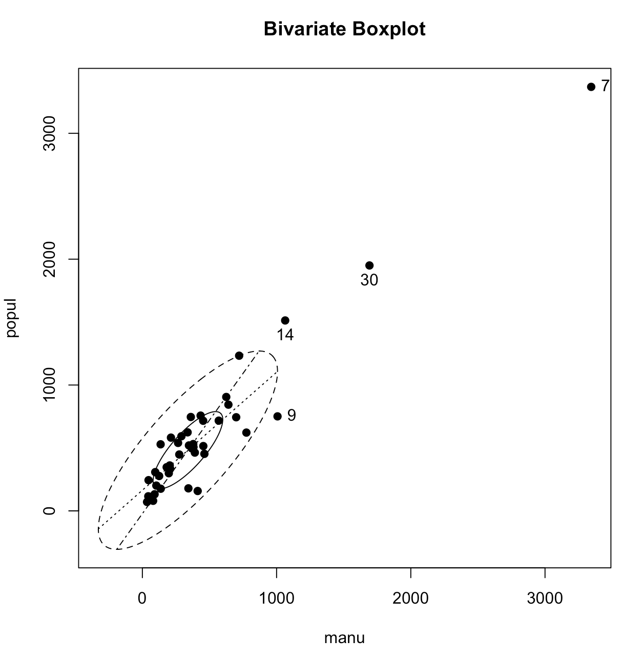 > bvbox(x, xlab="manu", ylab="popul", pch=19)