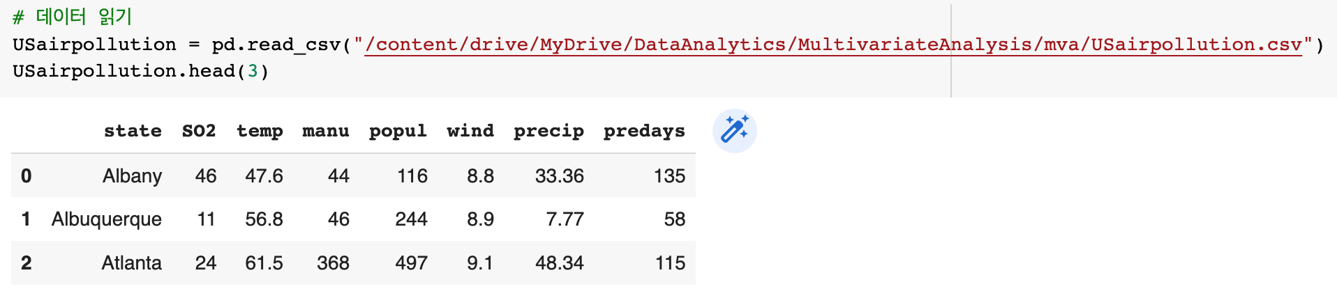 USairpollution = pd.read_csv("/content/drive/MyDrive/DataAnalytics/MultivariateAnalysis/mva/USairpollution.csv")