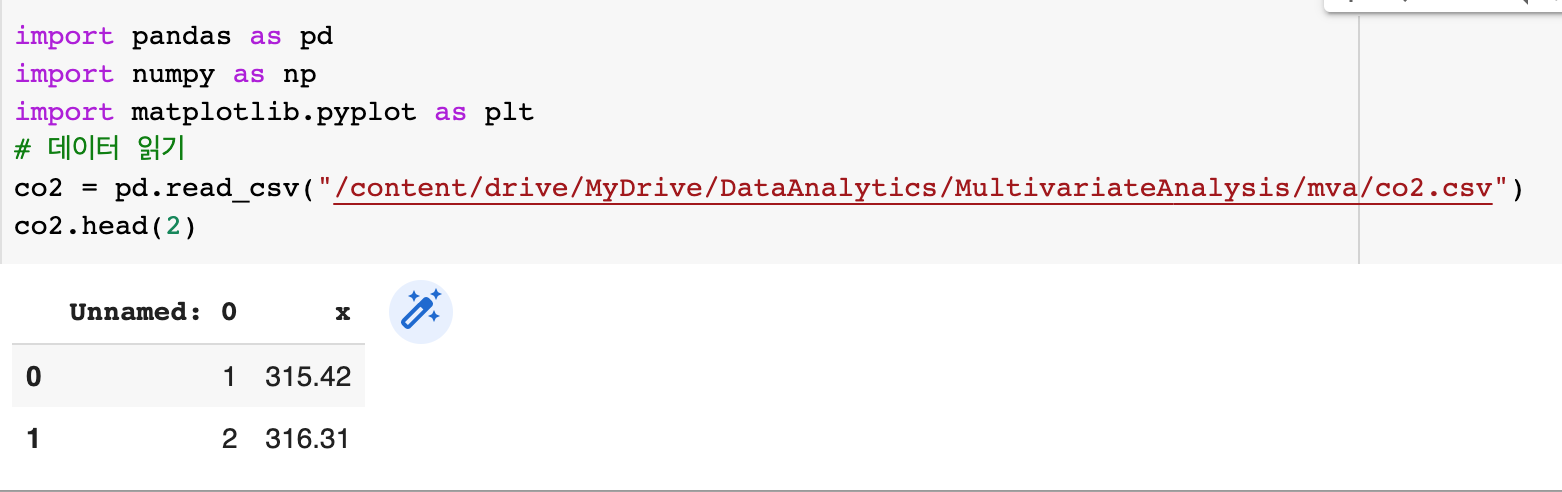 co2 = pd.read_csv("/content/drive/MyDrive/DataAnalytics/MultivariateAnalysis/mva/co2.csv")