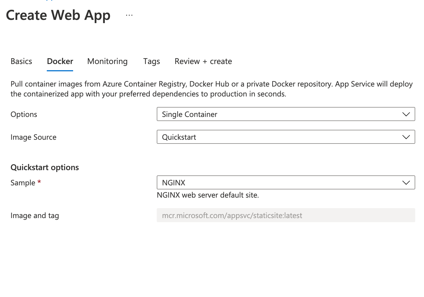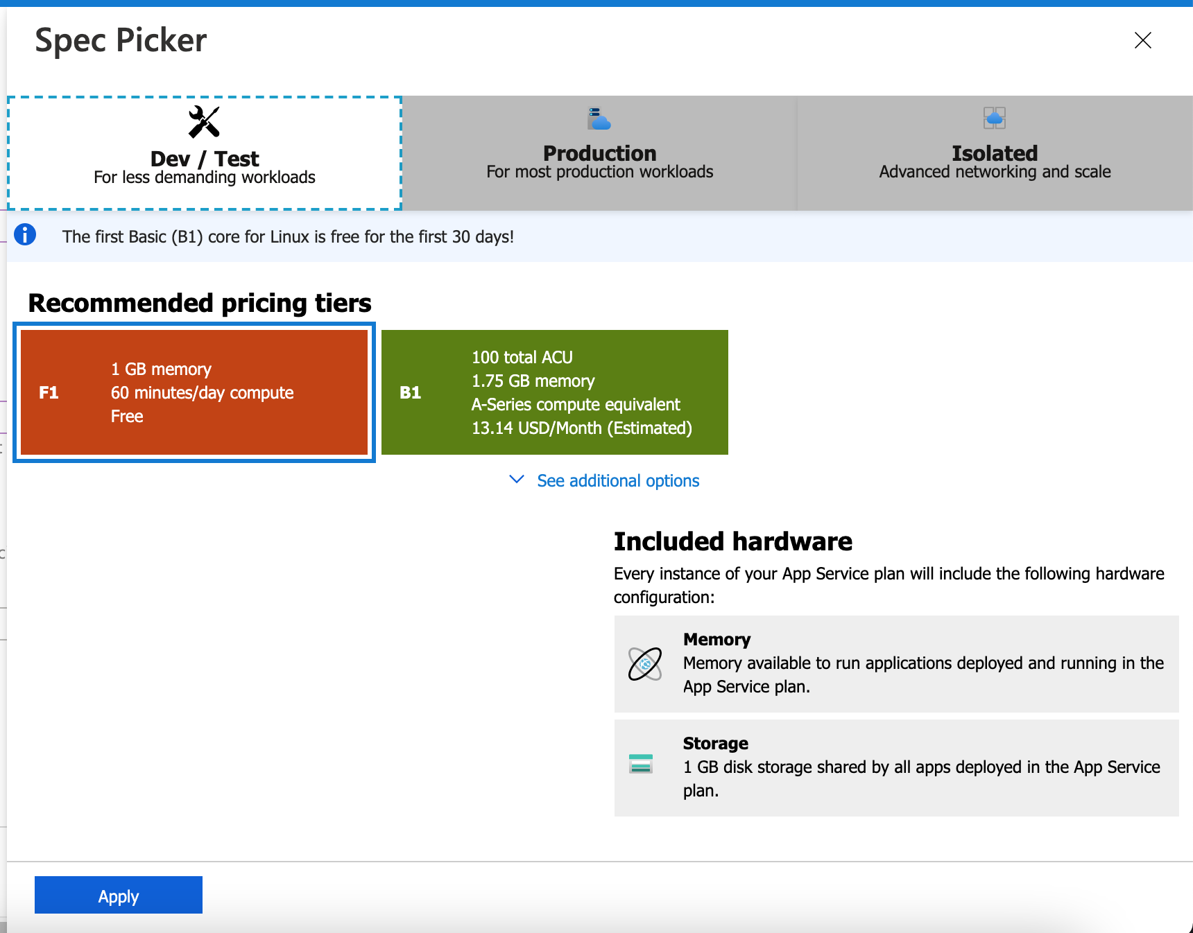 <!DOCTYPE html><html lang="en"><head> <meta charset="utf-8"> <meta name="viewport" content="width=device-width, initial-scale=1.0"> <meta http-equiv=X-UA-Compatible content="IE=edge"> <title>Microsoft Azure App Service - Welcome</title> <link rel="shortcut icon" href="https://appservice.azureedge.net/images/app-service/v3/favicon.ico" type="image/x-icon"/> <link rel="stylesheet" href="https://ajax.aspnetcdn.com/ajax/bootstrap/4.1.1/css/bootstrap.min.css" crossorigin="anonymous"> <link rel="stylesheet" type="text/css" href="https://appservice.azureedge.net/css/app-service/v3/main.css"> <script src="https://appservice.azureedge.net/scripts/app-service/v3/loc.min.js" crossorigin="anonymous"></script> <script type="text/javascript">window.onload=function (){try{var a=window.location.hostname; if (a.includes(".azurewebsites.net")){a=a.replace(".azurewebsites.net", "")}var b=document.getElementById("depCenterLink1"); b.setAttribute("href", b.getAttribute("href") + "&sitename=" + a); loc();}catch (d){}}</script></head><body> <nav class="navbar navbar-light bg-light"> <div class="navbar-brand "> <div class="container pl-4 ml-5"> <img src="https://appservice.azureedge.net/images/app-service/v3/microsoft_azure_logo.svg" width="270" height="108" alt=""> </div></div></nav> <div class="container-fluid container-height mr-2"> <div class="pt-10 pb-10 mt-10 mb-10 d-xxs-none d-xs-none d-sm-none d-md-none d-lg-block d-xl-block" style="height:20px; width:100%; clear:both;"></div><div class="row"> <div class="row col-xs-12 col-sm-12 d-block d-lg-none d-xl-none d-md-block d-sm-block d-xs-block"> <div class="text-center"> <img src="https://appservice.azureedge.net/images/app-service/v3/generic.svg"> </div></div><div class=" extra-pl-small-scr offset-xl-1 offset-lg-1 offset-md-2 offset-sm-2 offset-xs-4 col-xl-5 col-lg-5 col-md-10 col-sm-11 col-xs-11 div-vertical-center"> <div class="container-fluid"> <div class="row"> <h2 id="heyDevelopers">Hey, App Service developers!</h2> </div><br><div class="row"> <h4 id="upRunning">Your app service is up and running.</h4> </div><div class="row"> <h4 id="nextSteps">Time to take the next step and deploy your code.</h4> </div><div class="row info-mg-top"> <p class=" pl-0 col-md-6 col-sm-12 info-mg-top"><span id="codeReady">Have your code ready?</span><br><span id="useDCenter"> Use deployment center to get code published from your client or setup continuous deployment.</span><br><a id="depCenterLink1" href="https://go.microsoft.com/fwlink/?linkid=2057852"><button class="btn btn-primary btn-mg-top" type="submit" id="deplCenter">Deployment Center</button></a></p><p class="pl-0 offset-md-1 col-md-5 col-sm-12 info-mg-top"> <span id="codeNotReady">Don't have your code yet?</span><br><span id="followQS">Follow our quickstart guide and you'll have a full app ready in 5 minutes or less.</span> <br><a href="https://go.microsoft.com/fwlink/?linkid=2084231"><button class="btn btn-primary btn-mg-top" type="submit" id="quickStart">Quickstart</button></a></p></div></div></div><div class="col-xl-5 col-lg-5 col-md-12 d-none d-lg-block"> <div class="text-center"><img src="https://appservice.azureedge.net/images/app-service/v3/generic.svg"> </div></div><div class="col-xl-1 col-lg-1 col-md-1"></div></div></div><script src="https://ajax.aspnetcdn.com/ajax/jquery/jquery-3.2.1.min.js" crossorigin="anonymous"></script> <script src="https://ajax.aspnetcdn.com/ajax/bootstrap/4.1.1/bootstrap.min.js" crossorigin="anonymous"></script></body></html>