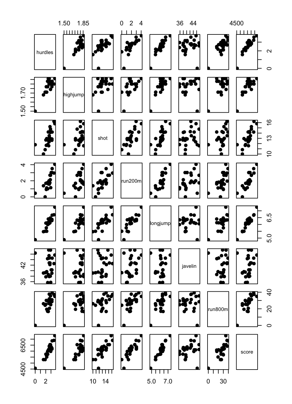 plot(heptathlon, pch=19)