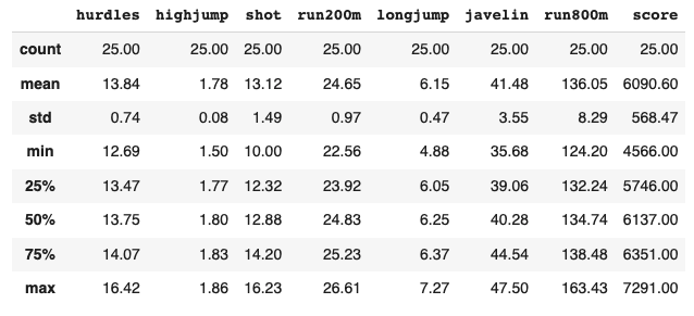 # heptathlon = pd.read_csv("/Users/DataAnalytics/MultivariateAnalysis/mva/heptathlon.csv")
