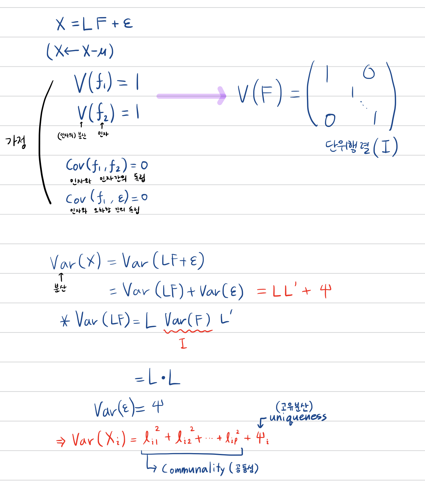 인자와 오차가 서로 독립이기 때문에 Var(LF)+Var($\epsilon$)으로 각자의 분산을 나눠줄 수 있다.