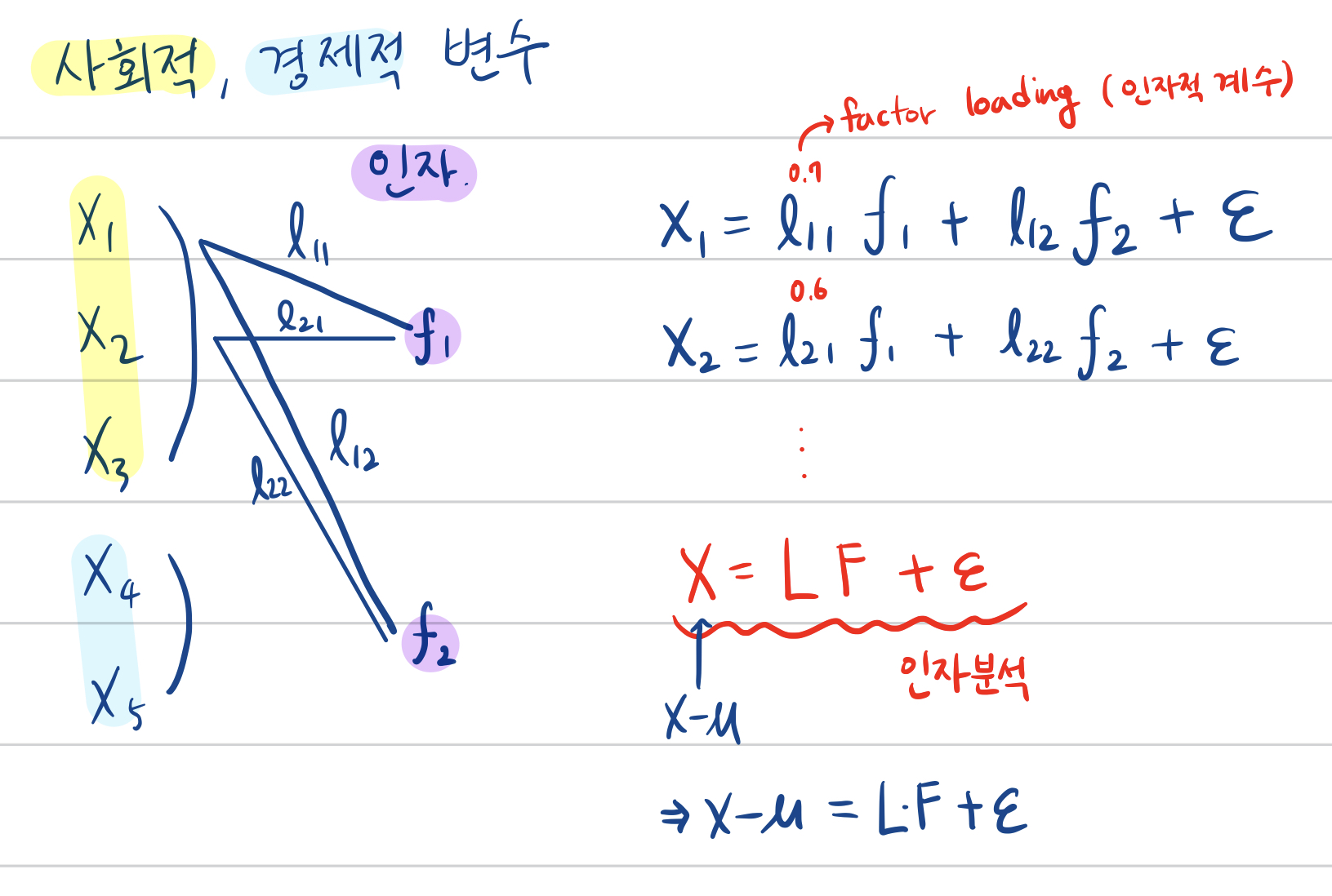 - L : factor loading (인자 적재 계수)
