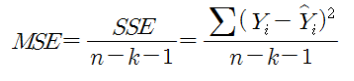 잔차제곱평균 (MSE) MSE = SSE / (n - k - 2) |