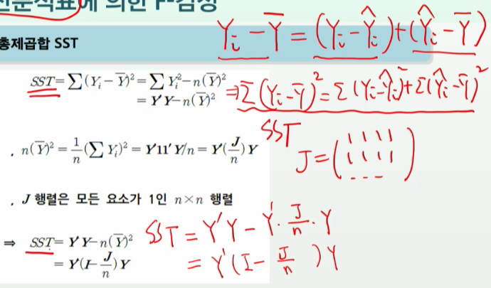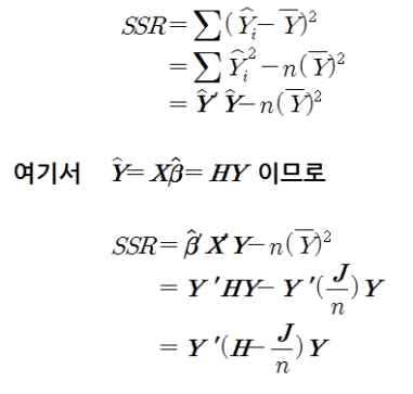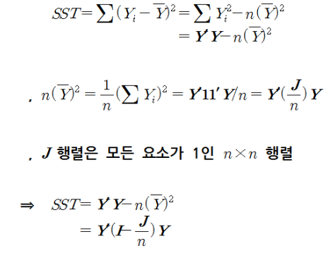| 총 (Total) | n - 1 | 총제곱합 (SST) SSR + SSE |