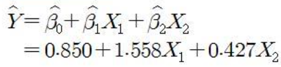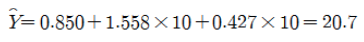 - 적합된 회귀식 $\hat Y_i$ = 0.85041 + 1.55811X1 + 0.42736X2