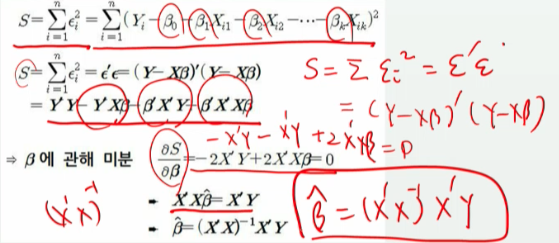 오차제곱의 합을 x라고 한다면 베타를 구하면 된다.