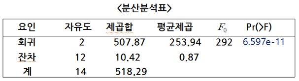 <중회귀의 분산분석표>