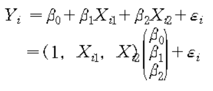 중회귀모형을 벡터로 표현하게 되면 계수벡터와 행벡터의 곱으로 표현할 수 있다.