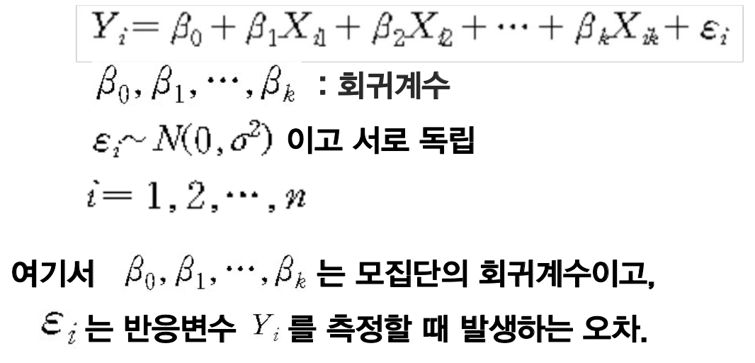 - 독립변수 갯수가 k개인 중회귀모형
