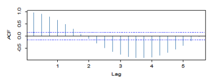 시차별 표본 자기상관계수의 그래프다.
