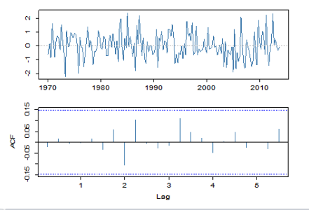 | GDP 로그차분계열 | 756.05 | < 2.2e-16 |