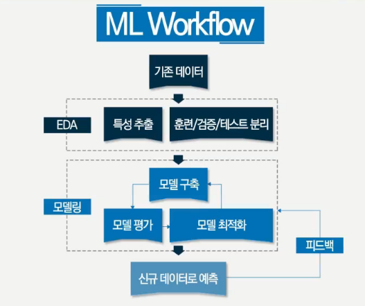 데이터 가공 및 전처리 => 훈련 데이터 추출 => 모델 평가(실제값과 예측값의 비교)