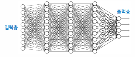 머신러닝의 분야 중 하나로 심층 신경망 기반의 모델이며 입력층과 출력층 사이에 많은 레이어가 존재한다.