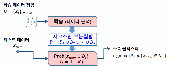 입력들을 서로 겹치지 않는 k개의 집합으로 나누고 새로운 데이터가 주어졌을 때 어느 그룹에 속할 것인지 확률로 계산해서 할당한다.