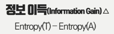 정보이득은 이전 엔트로피에서 현재 엔트로피를 뺀 값이다 많을수록 좋다.