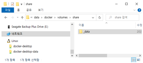 3) 폴더가 잘 생성된 것을 확인했으면 이제 도커 컨테이너에 연결해주도록 하자.