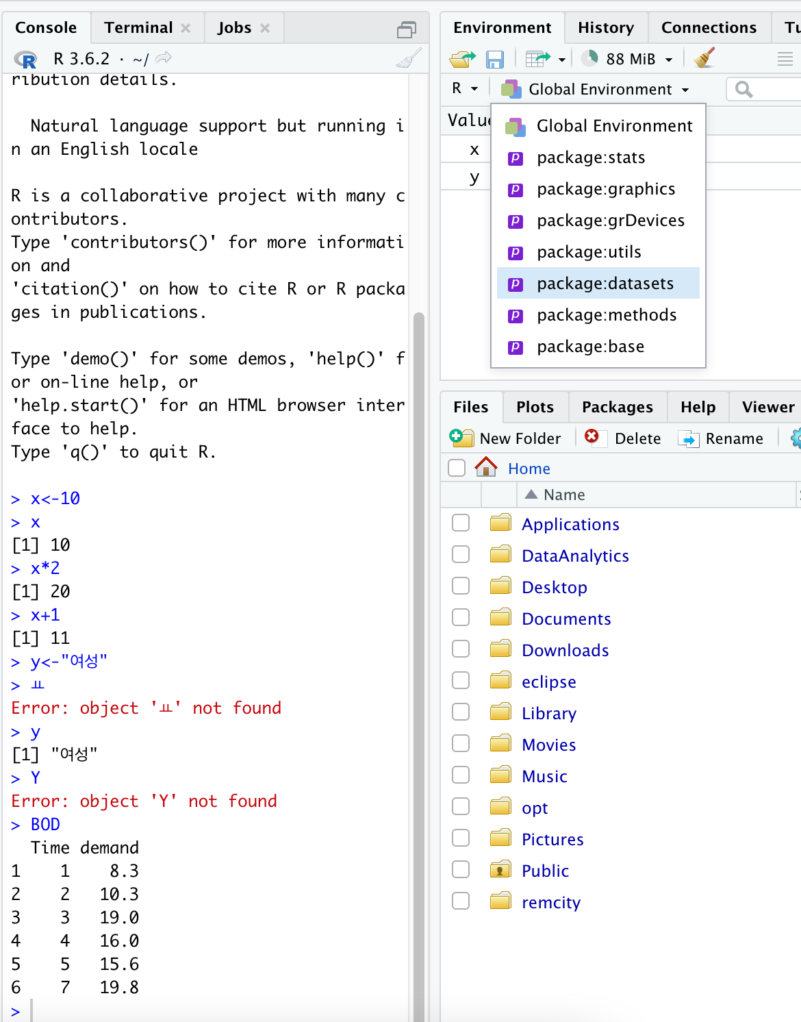 이것은 Global Environment의 dataset에 이미 저장되어있기 때문에 가져다 쓸 수 있다.